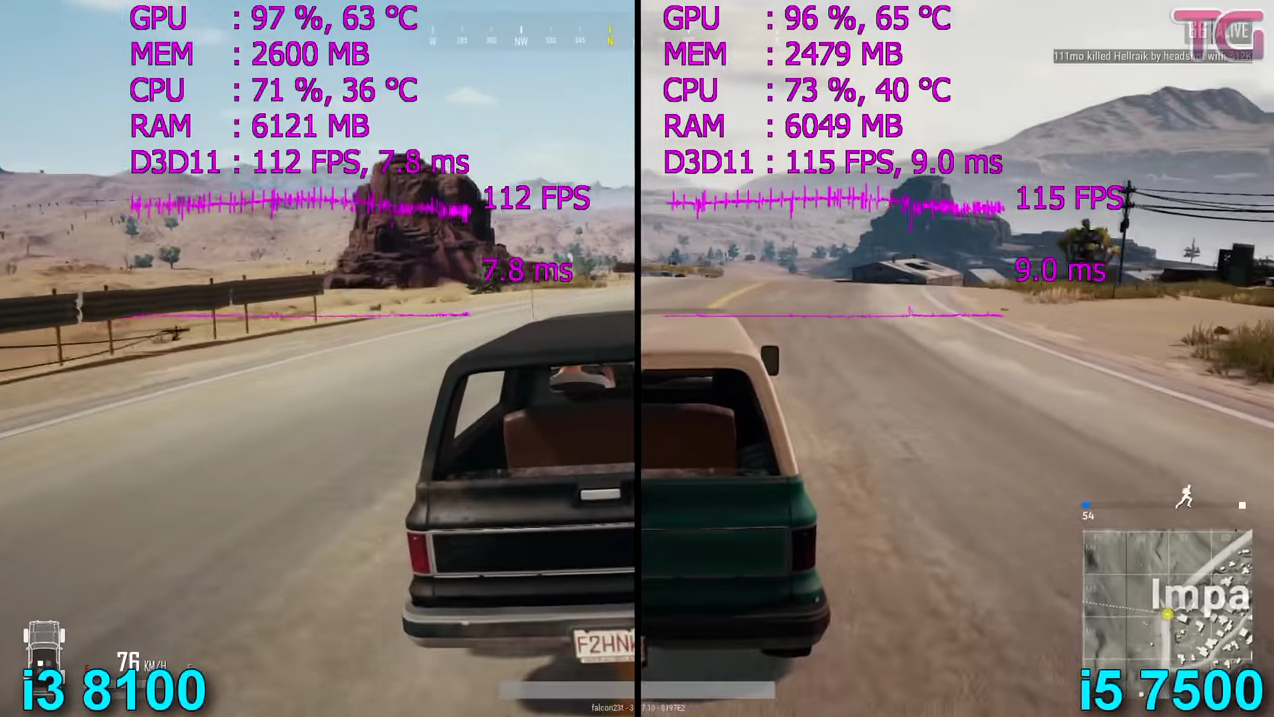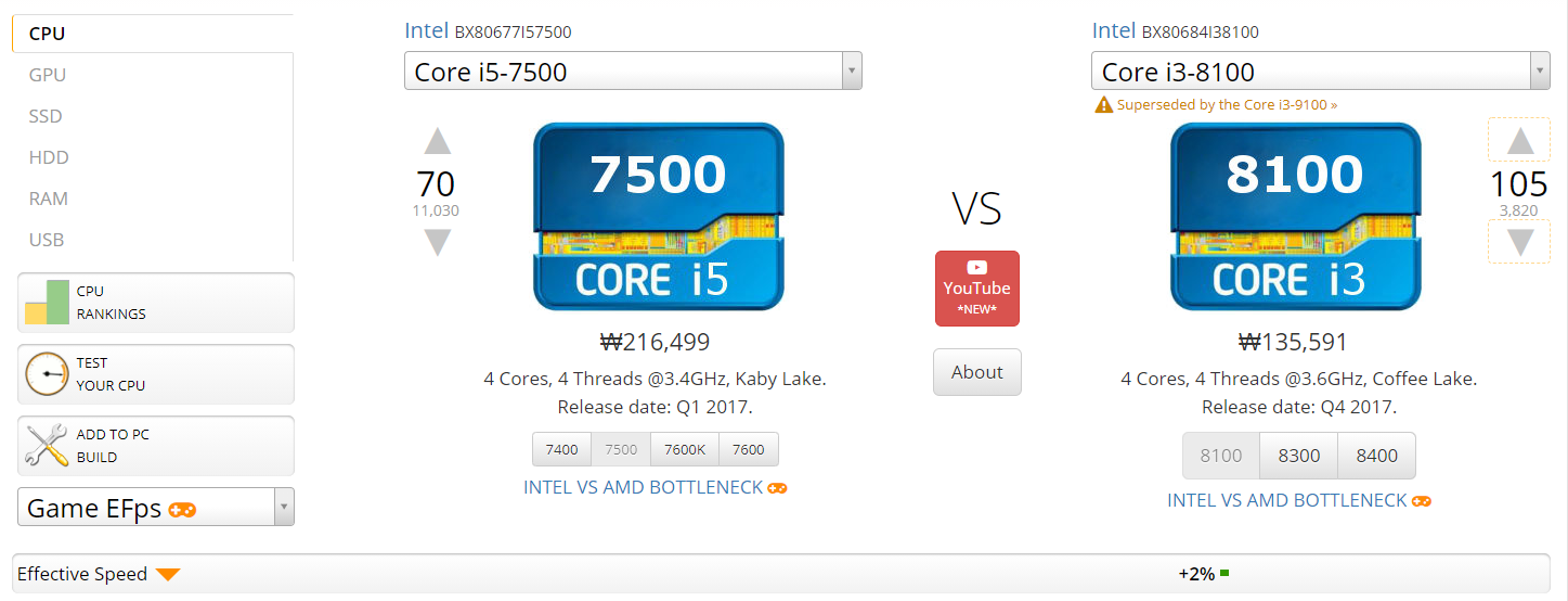 [CPU] 인텔 i5 7500 vs 인텔 i3 8100 게임 성능 비교!