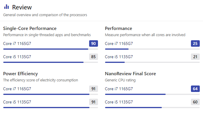| 인텔 코어 i5-1135G7 | 인텔 코어 i7-1165G7 | |