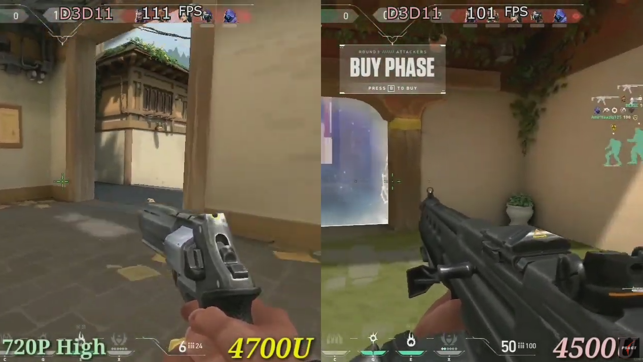 발로란트에서 나오는 프레임을 확인해 보면 4700U의 프레임이 4500U의 프레임에 비해서 약 10% 정도 향상된 성능을 보여주고 있습니다. 딱 1개의 코어 수 차이만큼 성능 격차가 나는 것을 알 수 있네요.