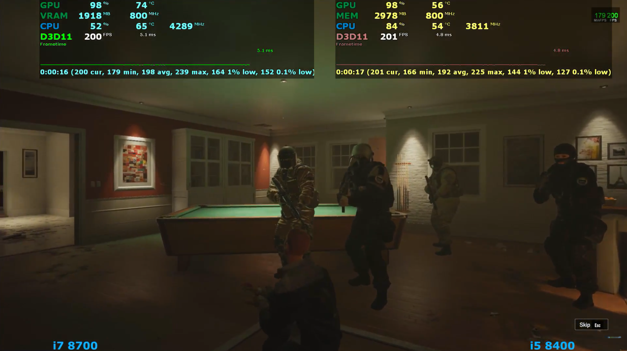 그러나 게임 말고도 다른 프로그램을 사용하신다고 하면 i7 8700이 절대적으로 유리하게 됩니다. 60hz 모니터를 사용하시는 분들은 8400도 여유롭지만 144를 쓰시게 되면 8400이 여유롭지가 않아 프레임 드랍이 훨씬 많이 올 것으로 예상됩니다.