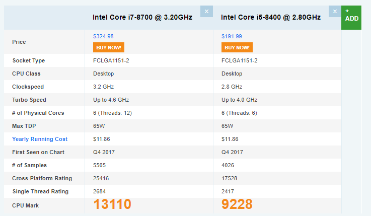 cpubenchmark에 보시면 i7 8700이 6쓰레드를 더 가지고 있어서 i5 8400 대비 멀티 성능이 40% 정도 우세한 성능을 가지고 있습니다. 그렇다면 해당 멀티 성능이 게임에서도 40% 우세한 성능을 보여주게 되는 것일까요?
