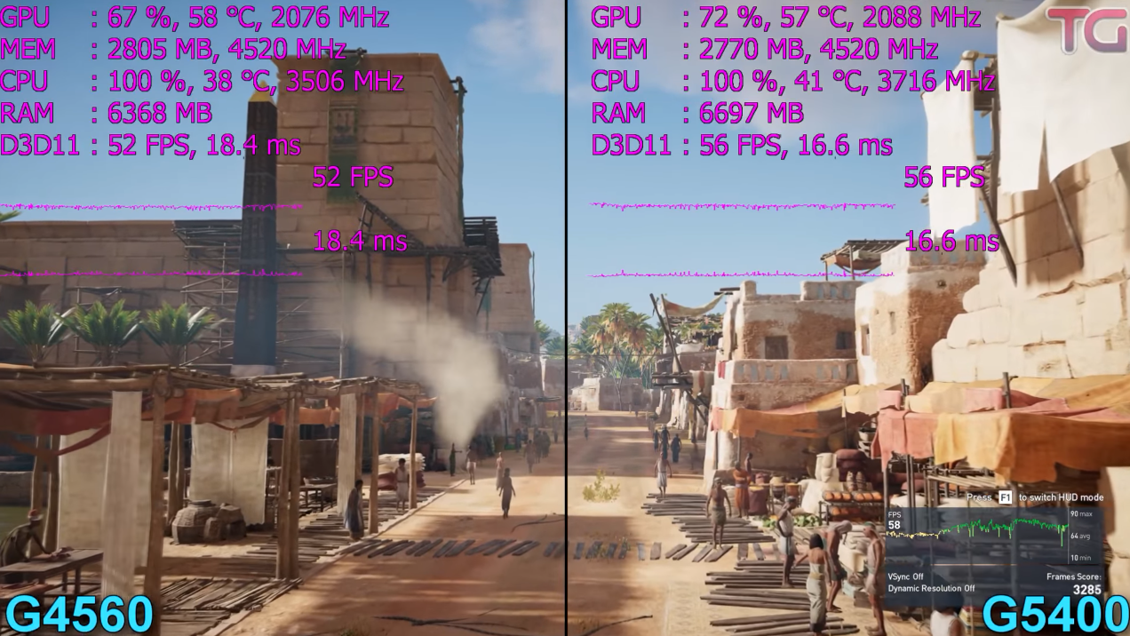 그러나 G4560의 프레임을 쭉 지켜보면 어쌔신 크리드 오디세이 같은 게임들을 제외한다면 60Hz 이상 프레임을 꾸준히 보여주기 때문에 업그레이드의 가치는 없어 보입니다.