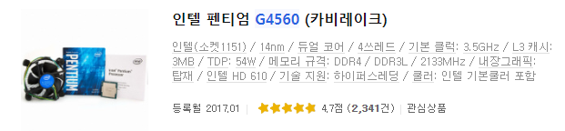 | 팬티엄 G4560 | 팬티엄 골드 G5400 | |