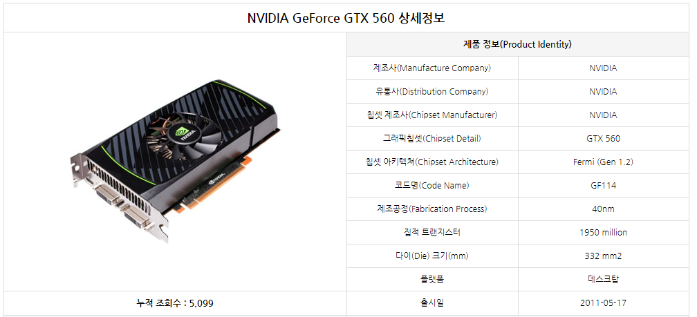 Hwbattle 사이트에 따르면 GTX560은 2011년 5월에 출시하고 전력을 150W을 먹어 그 당시에는 전력을 꽤 먹는 그래픽카드로 알려져 있습니다.