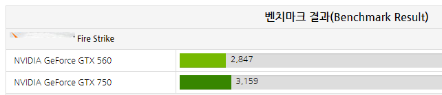 파이어 스트라이크 점수 GTX560 : 2847, GTX750 : 3159