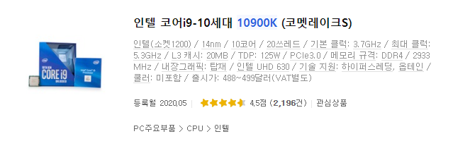 | 인텔 i9-9900K | 인텔 i9-10900K | |