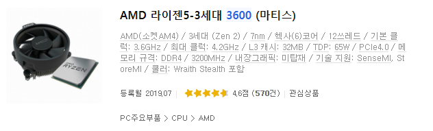 저도 라이젠 3600을 사용해 보았지만 롤이나 오버워치에서 144hz 잘 방어해주면서 즐겁게 게임을 한 기억이 있네요. 여러분들이 멀티 성능을 크게 중요시하지 않는다면 라이젠 3600을 게임용으로 가시는 것을 추천드립니다!