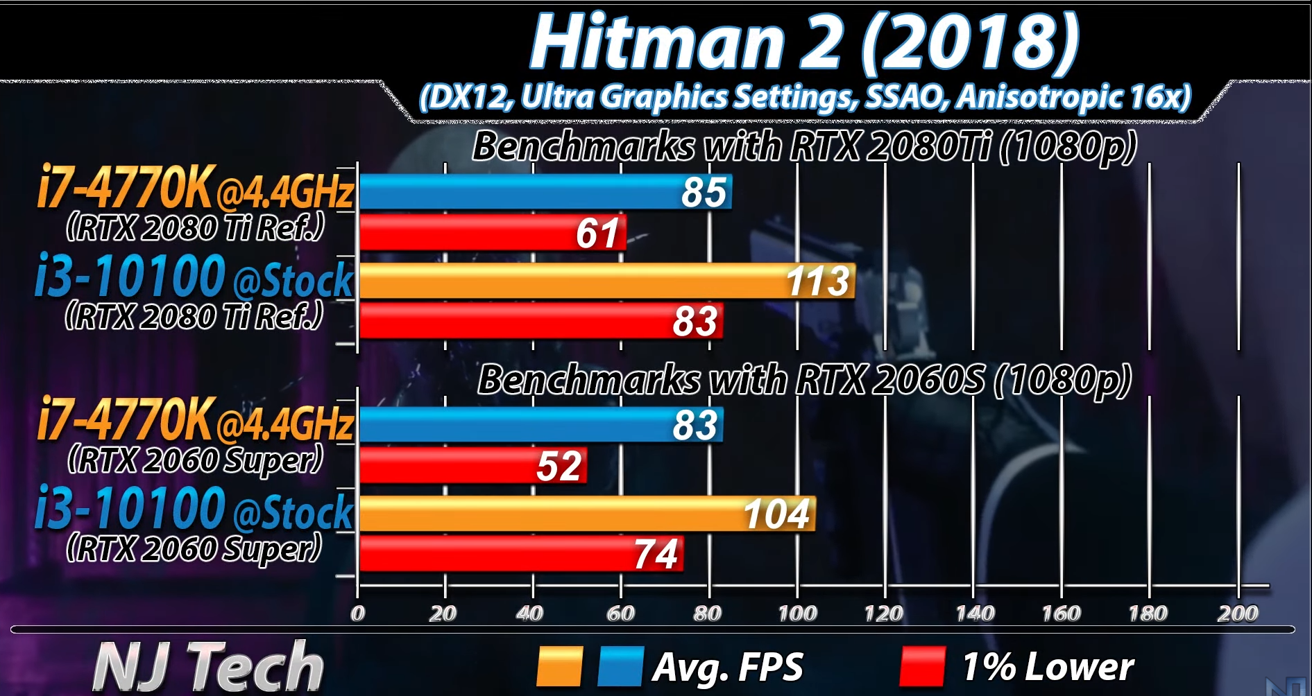 IPC가 중요한 게임인 히트맨 2를 보시면 예상과는 다르게 i3-10100이 25% 정도 성능 차이를 보이면서 월등한 성능을 내주고 있습니다. 시네벤치 R20에서는 그렇게 큰 차이를 보이지 않았는데 막상 게임에서 보니 생각보다 큰 차이를 내는 것을 알 수 있습니다.