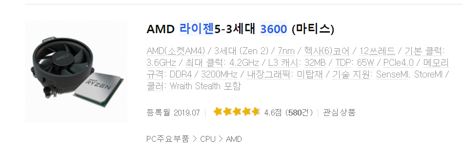 | 인텔 i7-4770 | 라이젠 3600 | |