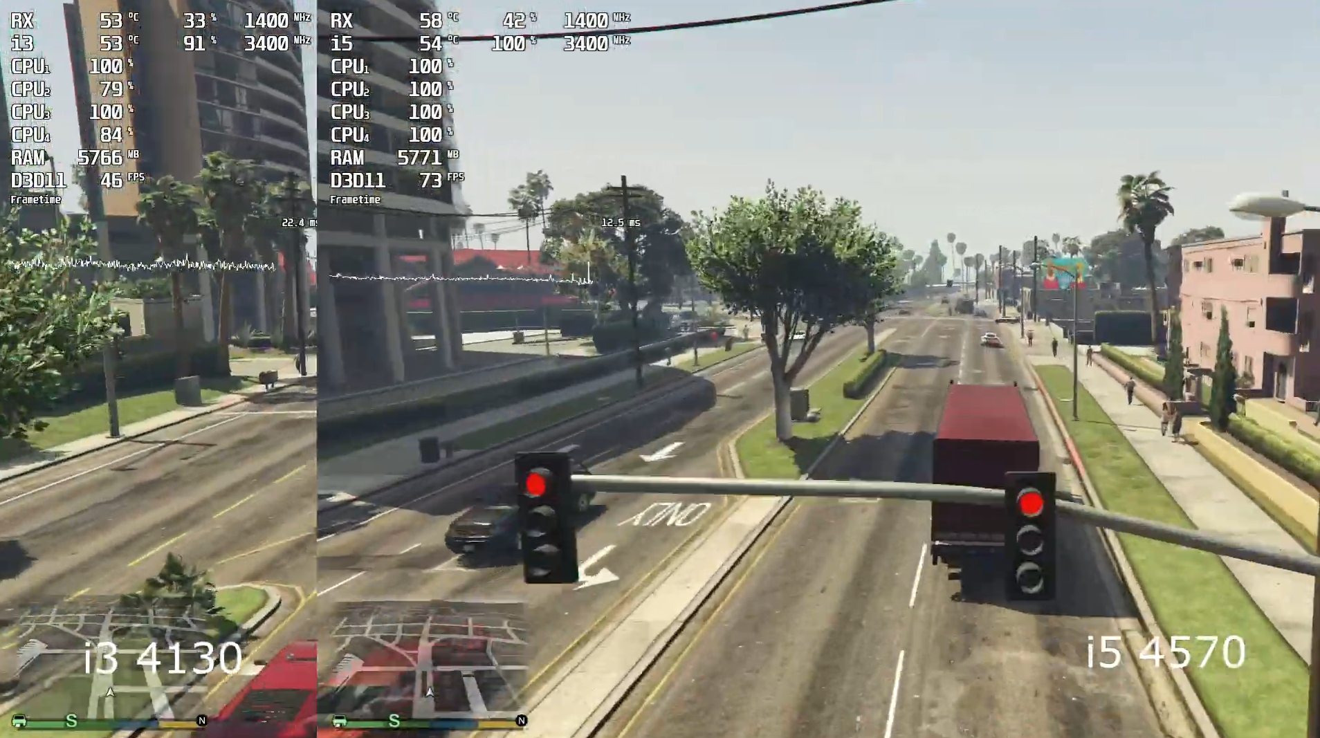 2013년에 발매한 GTA 5에서 시행한 결과를 보시면 i5 4570의 프레임은 60~80, i3 4130의 프레임은 40~50에서 머물러 이 역시 20% 정도의 차이를 보여주었습니다.