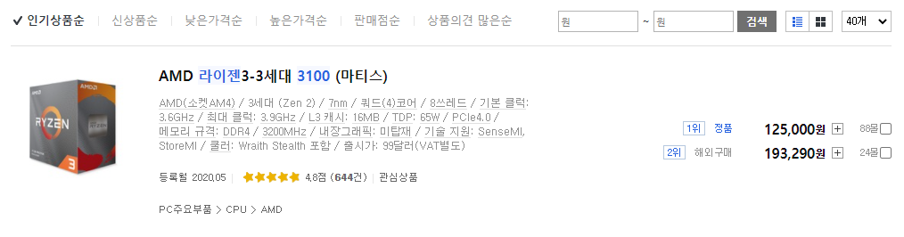 [CPU] 라이젠 3300x vs 라이젠 3100 게임 성능 차이는?