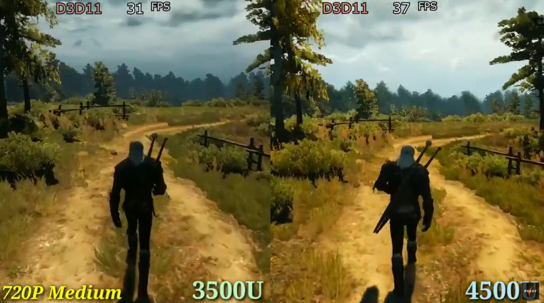 HD 더 위쳐 3 중간 옵션으로 돌렸을 때 라이젠 4500U가 3500U에 비해 약 20% 우세한 성능을 보여주었습니다. 라이젠 4500U가 대체로 3500U에 우세한 성능을 보여주고 있는 것 같습니다.