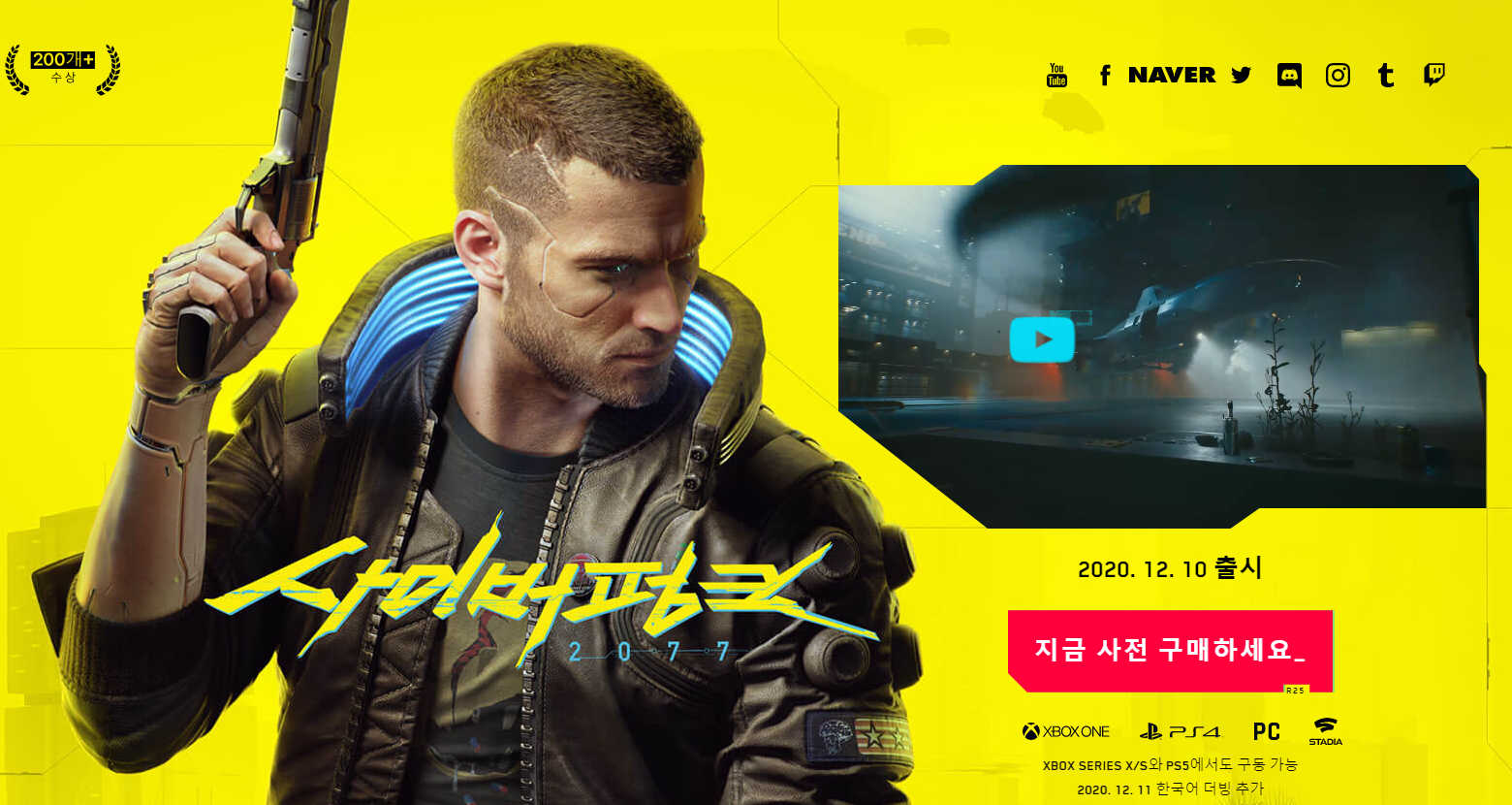 미루고 미룬 출시일이지만 2020년 12월 10일에 GTA 5보다 개발비를 더 많이 투입하고 한국어로 더빙하여 한국 사람들에게 큰 기대를 만들어 준 <사이버 펑크 2077>이 출시합니다!
