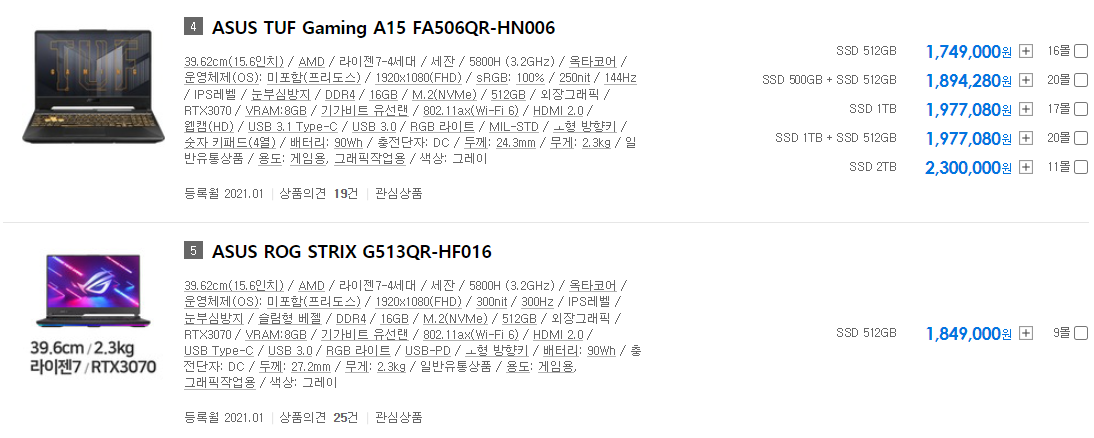 GTX1000번대가 나올 때는 해당 가격으로 GTX1070을 살 수 있었는데 현재 그 이상의 성능을 내주는 RTX3070과 라이젠 5800H를 그 가격으로 쓸 수 있다는 것이 좋아 보이네요.