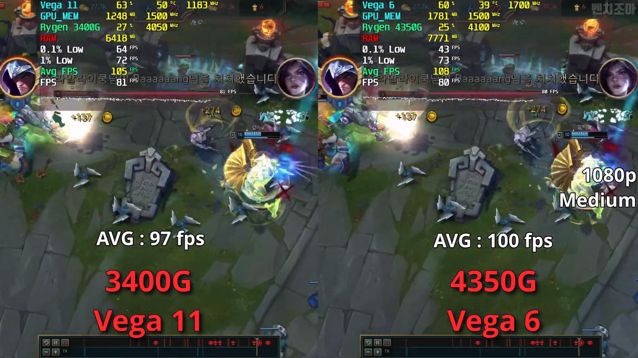 [CPU] 라이젠 르누아르 4350G vs 라이젠 3400G 게임 성능 차이는?