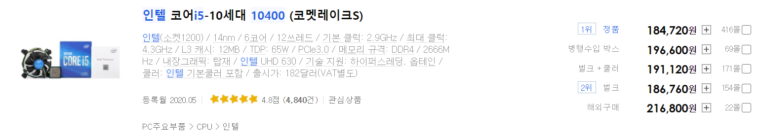 i5-10400의 내장 그래픽으로 게임하기에는 라이젠 내장 그래픽 성능이 워낙 좋기 때문에 인텔 내장 그래픽으로 게임을 하기에는 약간 무리가 있지 않나 싶네요.
