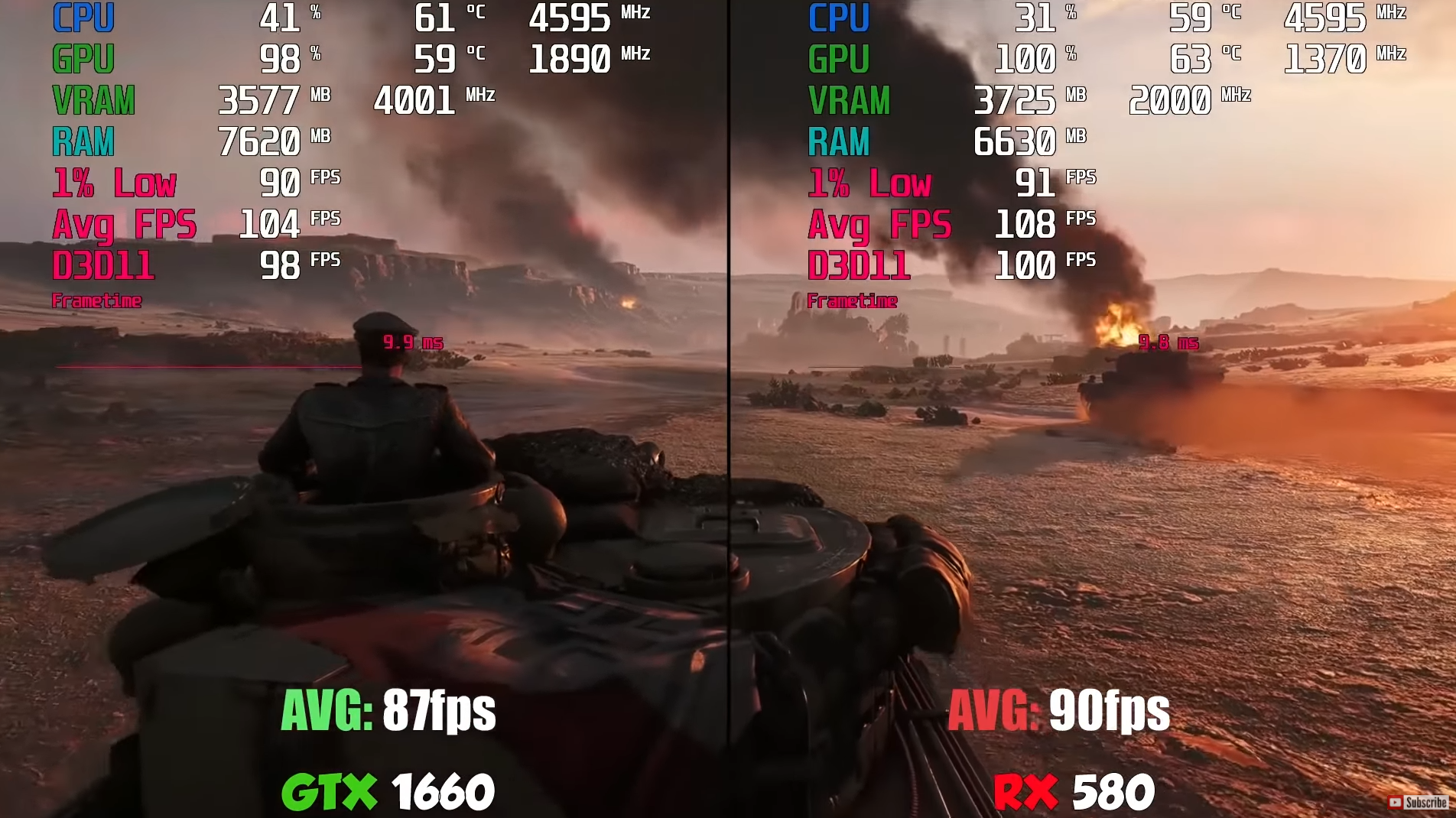 배틀필드 5에서 RX580이 더 우세한 성능을 보여주고 있지만, 라데온에 더 최적화되어 있는 배틀필드 5이기 때문에 다른 게임에서는 GTX1660이 우세할 것으로 보이네요.