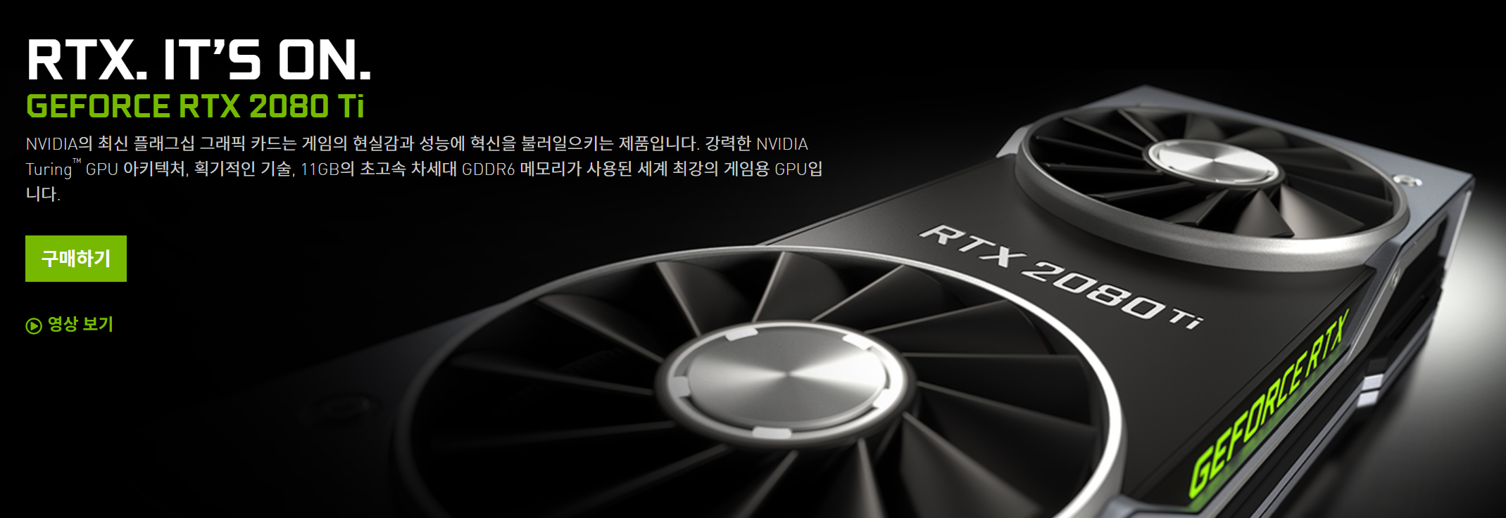RTX2080 Ti 출시 당시 가격은 $1199에 육박했지만 GTX1080 Ti와 그리 큰 차이 성능을 내지 못했기 때문에 표면적으로 환영받지 못한 그래픽카드였지만, 그 당시에 타이탄 모델을 제외하면 최강의 그래픽카드였기 때문에 마니아 분들에게 선택을 받은 그래픽카드였죠.