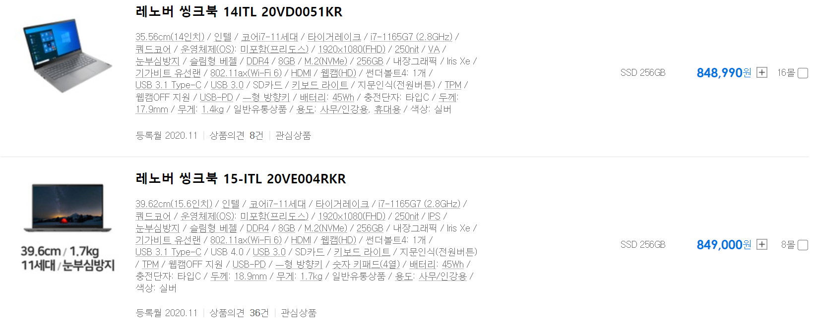 두 모델 80만원 중반대에 형성되어 있기 때문에 만약 노트북으로 게임을 자주 하시는 분들이라면 MX450을 가시는 것을 추천드립니다.