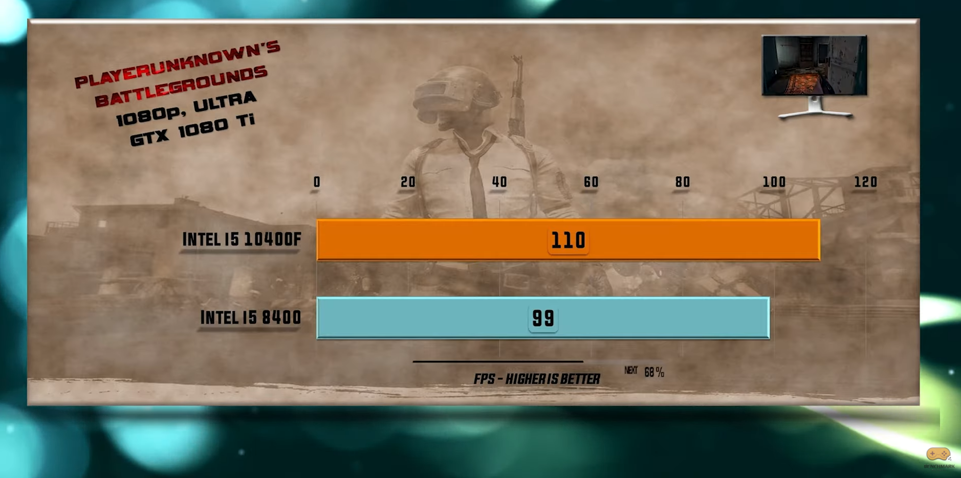 종합적으로 보았을 때 게임마다 편차가 있지만 인텔 i5-10400F가 인텔 i5-8400에 비해 약 14% 우세한 게임 성능을 보여주었습니다.