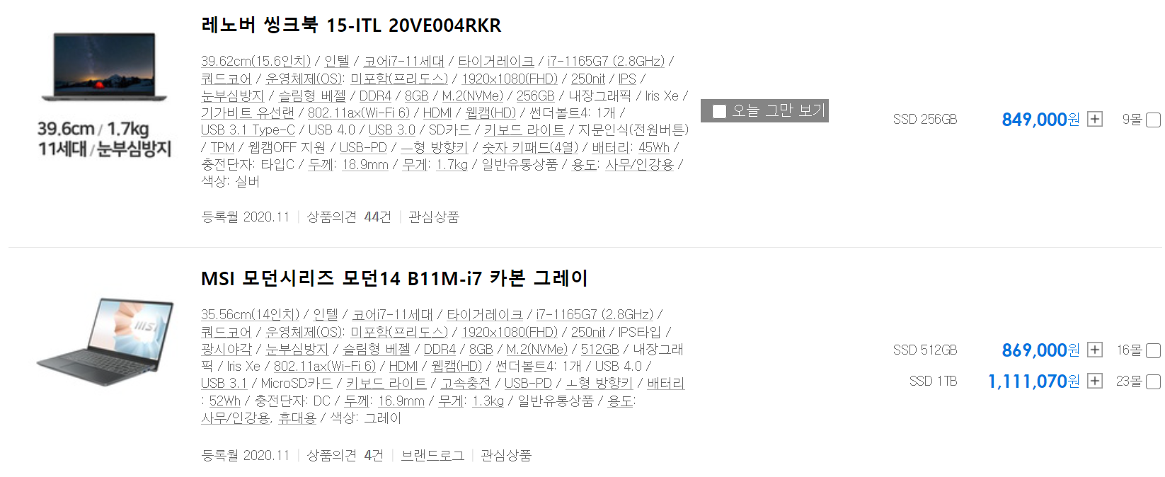 - [CPU] 인텔 11세대 타이거레이크 i5-1135G7 vs i7-1165G7 비교