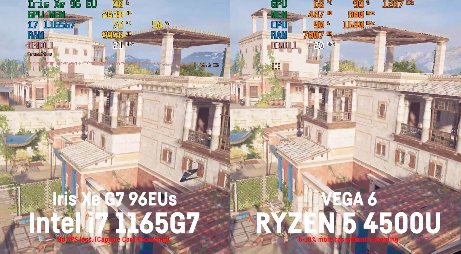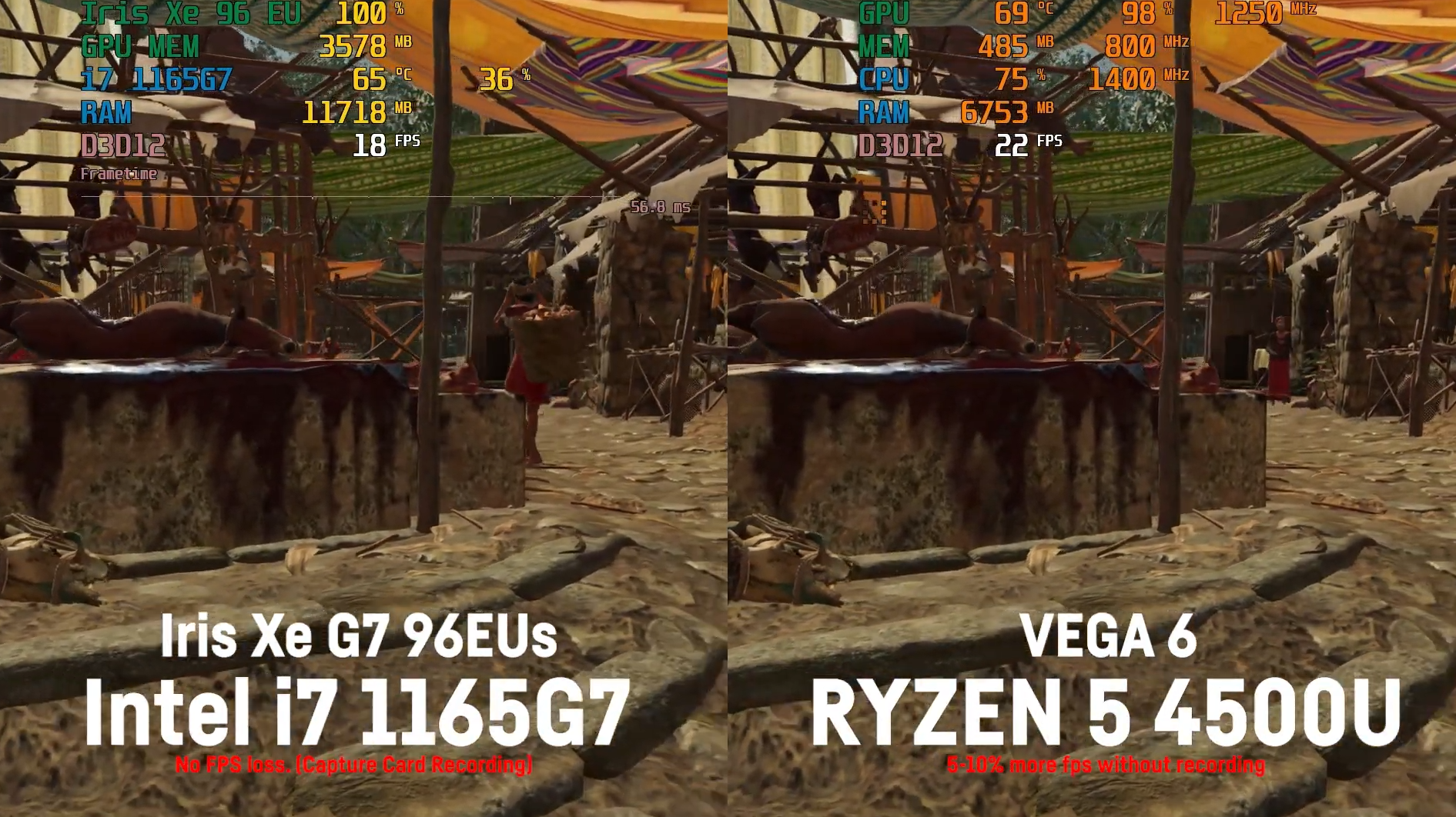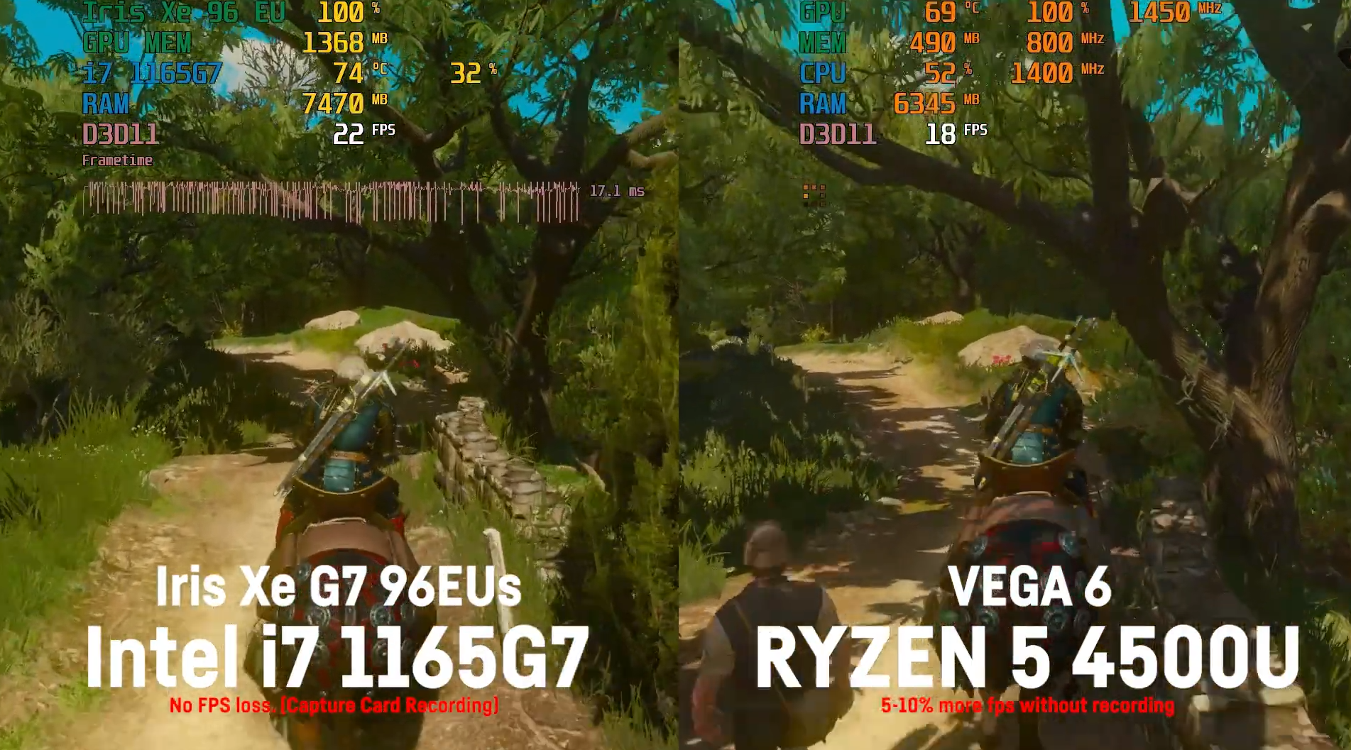 종합적으로 보았을 때 게임마다 편차가 있지만 인텔 i7-1165G7와 라이젠 4500U는 거의 동급의 게이밍 성능을 보여주었습니다.