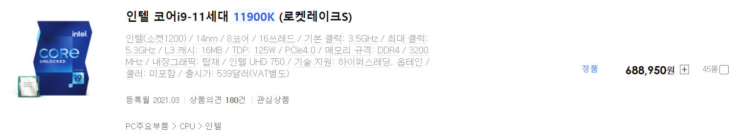 688,950원(11900K, 정품) vs 877,390(5900X, 정품)