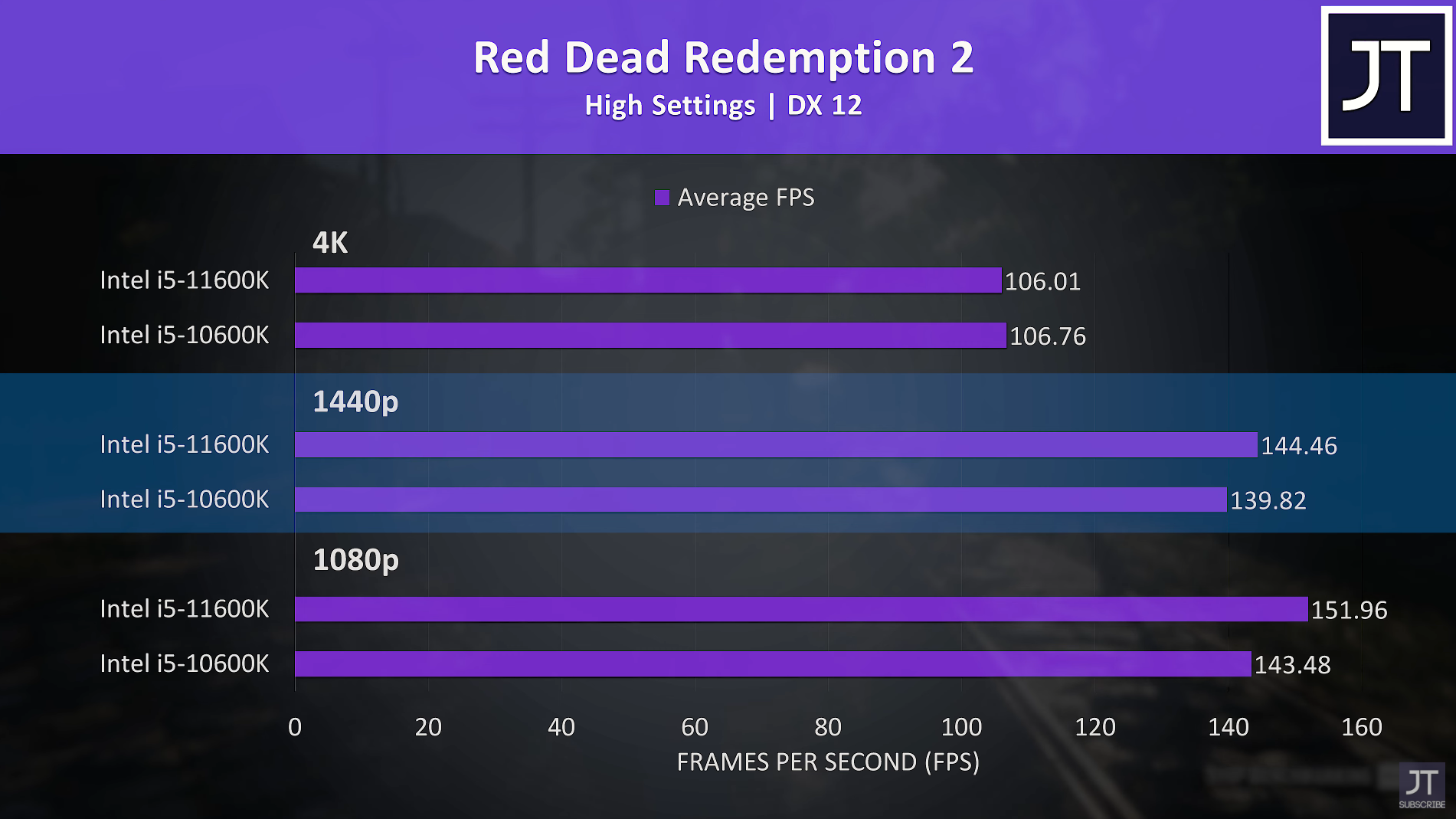 레드 데드 리뎀션 2 높음에서 FHD 기준으로 각 평균 프레임은 152, 143으로 인텔 i5-11600K가 인텔 i5-10600K 비해 약 6% 우세한 성능을 보여주었습니다.