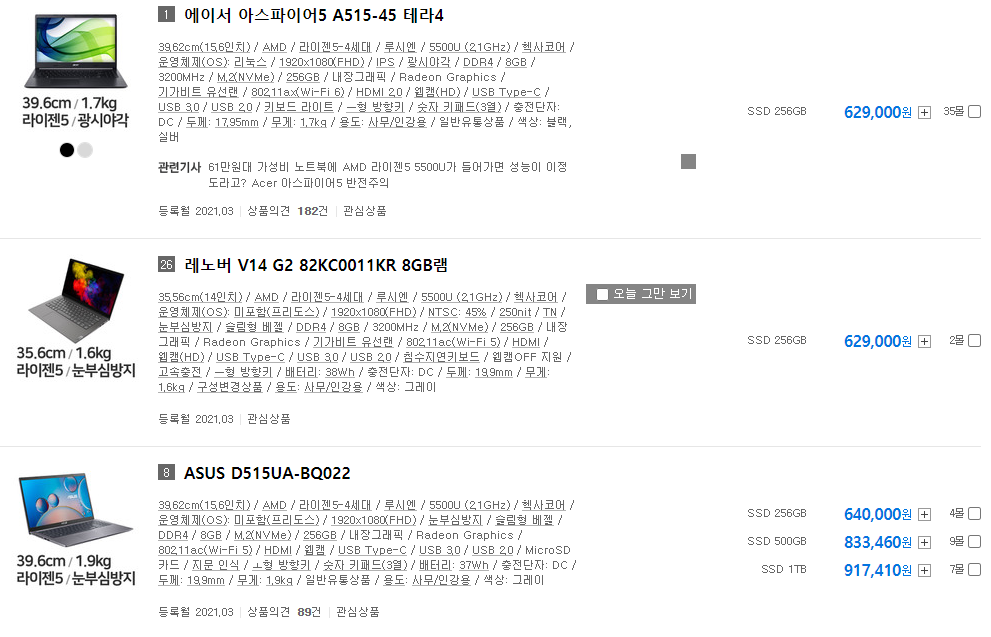 15.6인치 기준으로 약 63만원에 구매하실 수 있는 것으로 보입니다. DDR4 8GB를 더 추가하신다면 70만원 정도에 구매하실 수 있을 것으로 보이네요.
