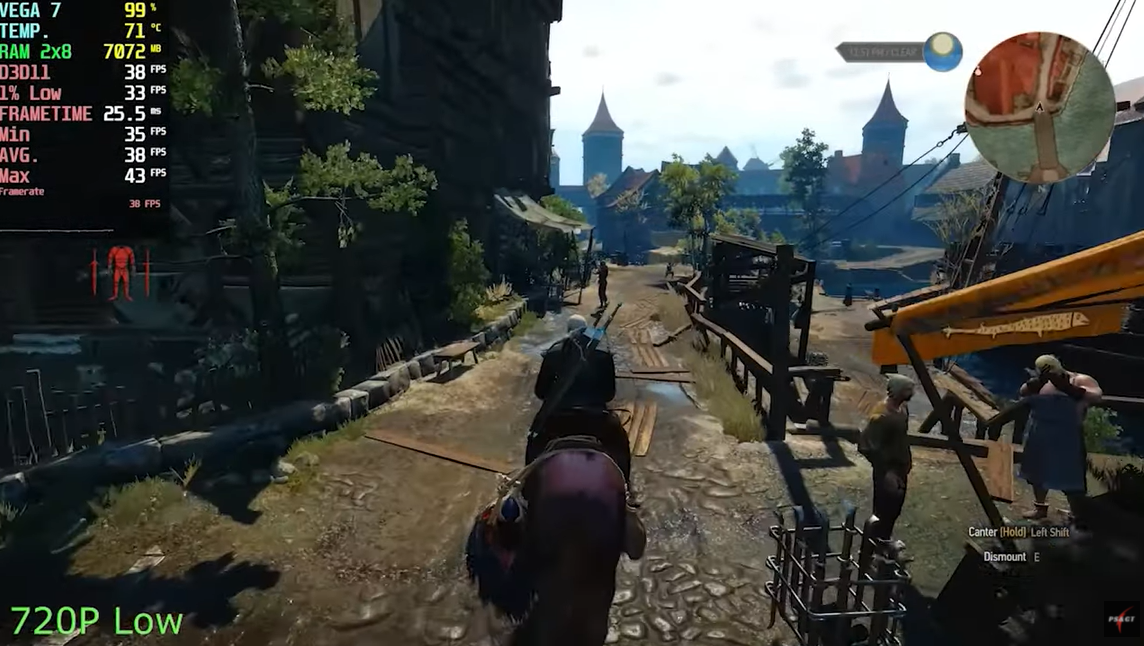 더 위쳐 3 낮음에서 720P 기준으로 평균 프레임이 38이 나왔습니다. 라이젠 5500U로 패키지 게임을 돌리기에는 아직까지 무리가 되는 성능이 아니지 않나 싶습니다.