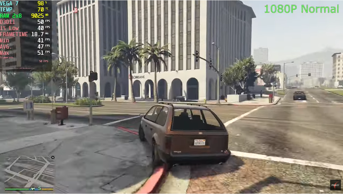 GTA 5 보통에서 FHD 기준으로 평균 프레임이 47이 나왔습니다. 라이젠 5500U로 GTA5를 어느 정도 즐길 수 있는 프레임을 보여주고 있지만 중간중간 끊기는 느낌이 없지 않아 있을 것으로 보이네요.