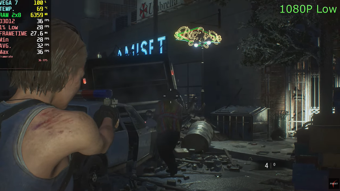 레지던트 이블 3 리메이크 낮음에서 FHD 기준으로 평균 프레임이 32이 나왔습니다.