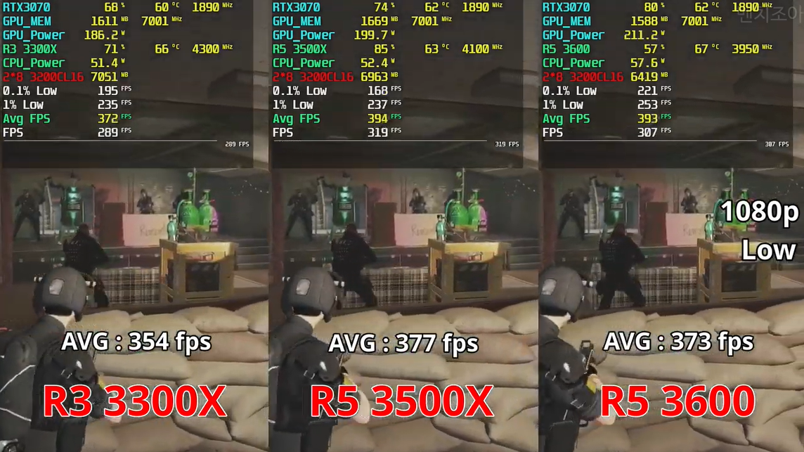 [CPU] 라이젠 3300X vs 3500X vs 3600 게임 성능 차이는?