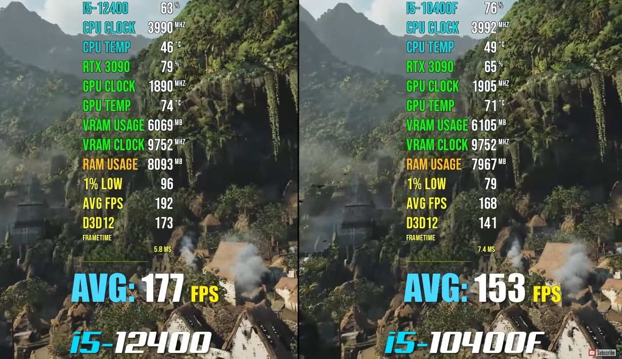 [CPU] 인텔 12세대 i5-12400F vs 10세대 i5-10400F 게임 성능 차이는?