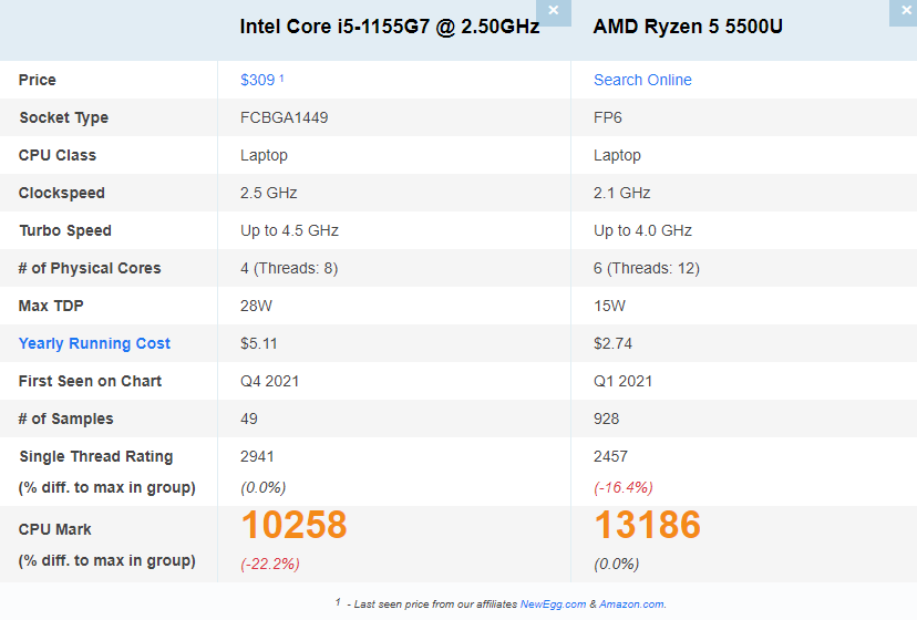 [CPU] 노트북 인텔 CPU i5-1155G7 vs 라이젠 R5 5500U 게임 성능 차이는?