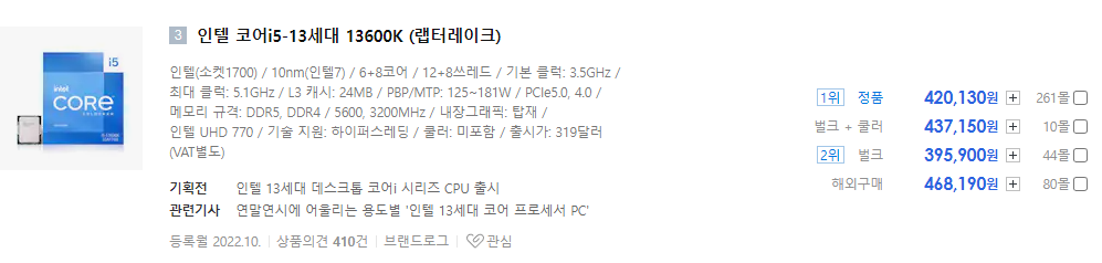다나와 링크 : i5-13600KF, i5-13600K
