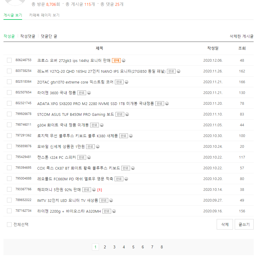 택배 거래를 통해서라도 꼭 그 물건을 구입하시겠다면 판매자 내역과 최근 거래를 먼저 확인해야 합니다.
