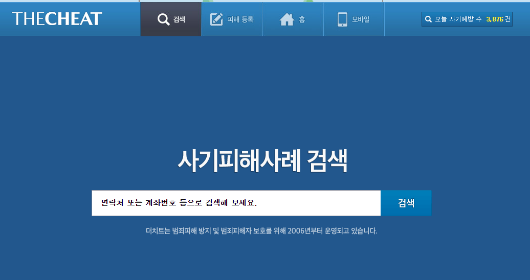 더치트는 사기 방지를 위해 피해자들의 피해 내역들을 종합한 사이트입니다. 해당 연락처 또는 계좌번호를 검색하게 되면 최근 3개월간 그 번호 또는 계좌의 피해 내역 여부가 공개가 됩니다. 아래는 해당 사이트 URL입니다.