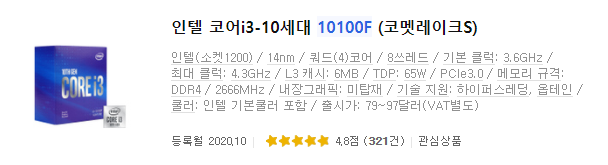 14 나노의 장인?으로 불려지는 인텔은 공정 개선을 하지 못하여 계속해서 AMD에게 두들겨 맞는 상황인데요, 그럼에도 가성비에서 꽉 잡는 모델이 있습니다. 바로 그것은 i3 - 10100F!!