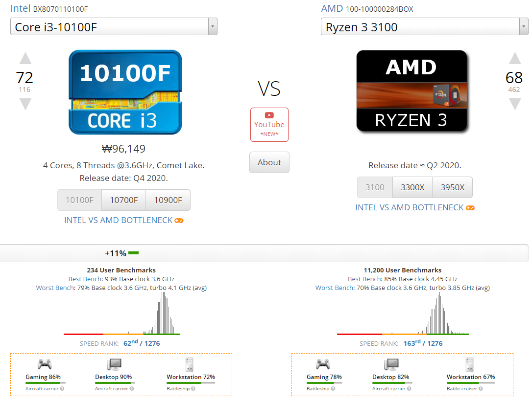 [CPU] 인텔 i3-10100F vs 라이젠 3100 (feat. 게임)