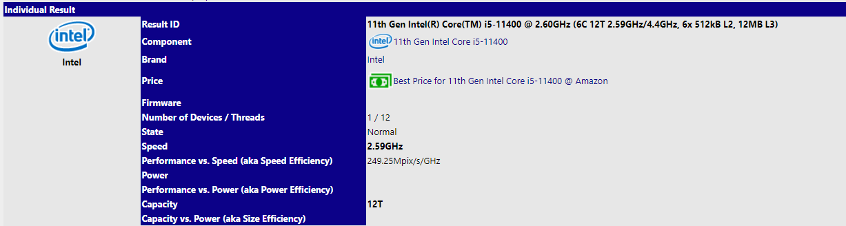 i5-11400은 i5-10400과 같이 같은 코어와 쓰레드인 6 코어 12 스레드이며 베이스 클럭은 2.6 GHz, 부스트 클럭은 4.4 GHz를 기록하고 있습니다. 올 코어의 경우, 4.2 GHz 일 것이라고 알려져 있습니다.