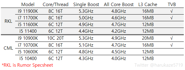 [CPU] 인텔 11세대 i9 11900K 코어 개수 유출?