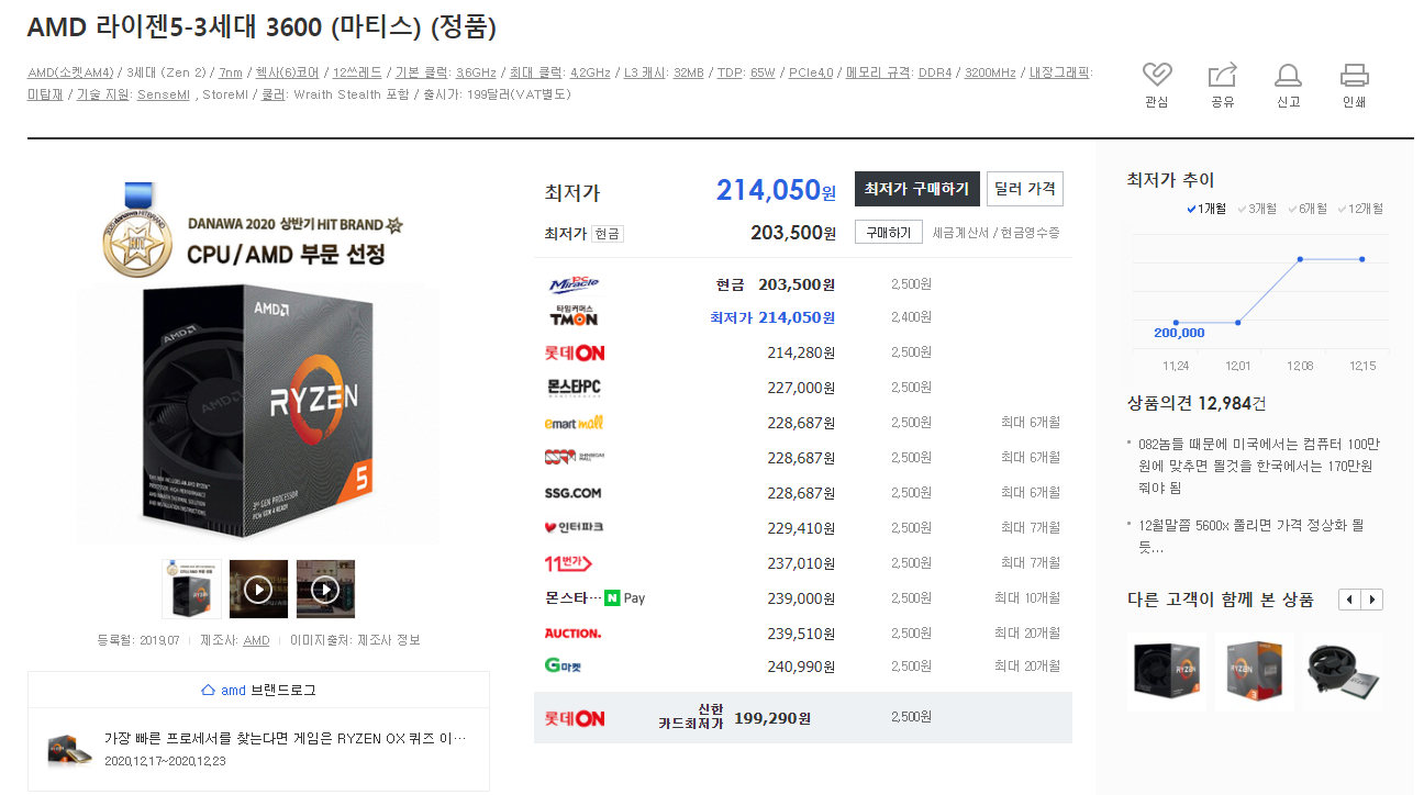 라이젠 3600은 2019년 7월에 소비자에게 판매가 시작이 되었습니다. 라이젠 1600, 2600에서 불법 바이럴에 의해서 컴퓨터 커뮤니티에서 많은 질타를 받게 되었습니다.