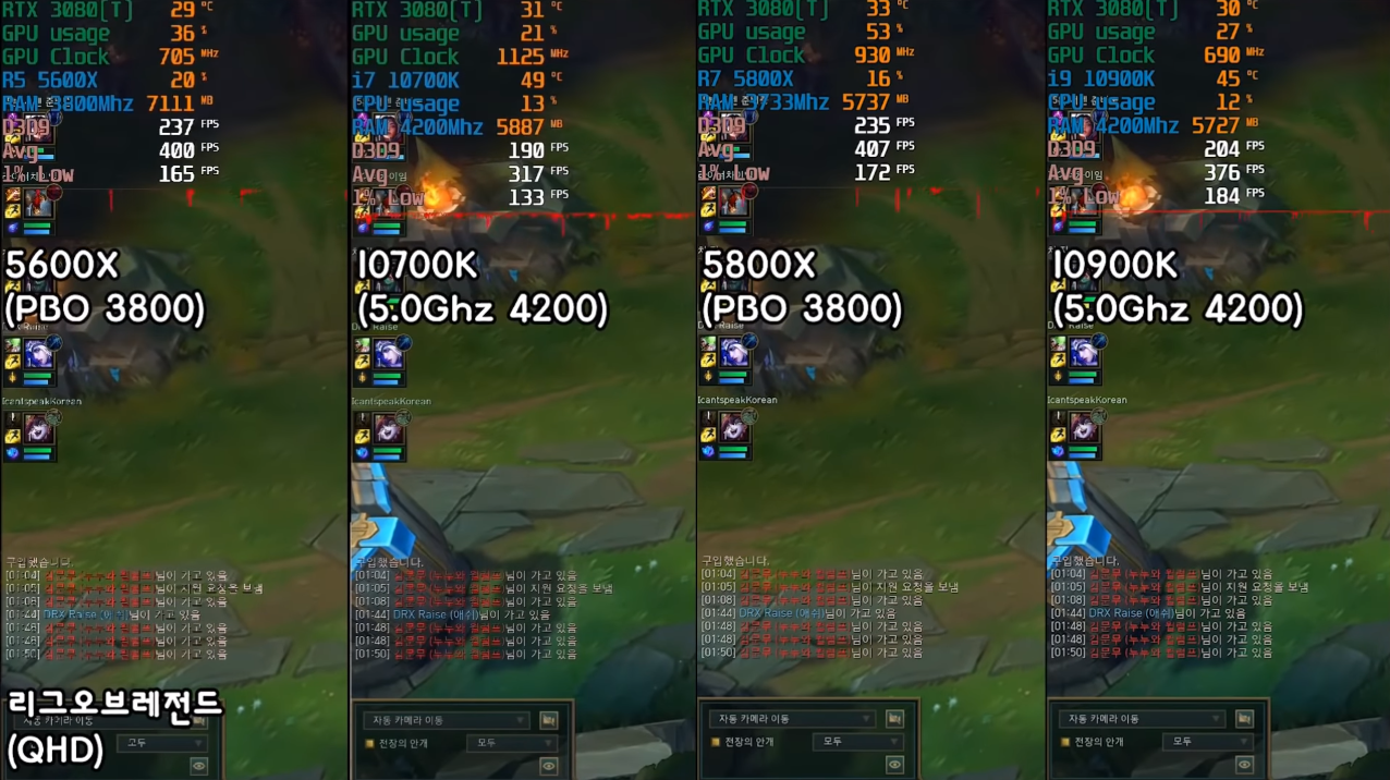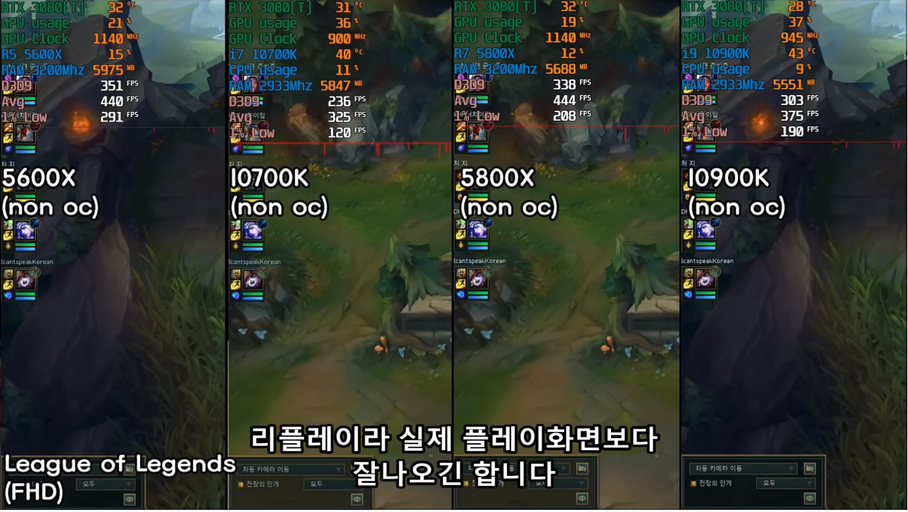 리그 오브 레전드의 벤치마크를 봤는데 이게 웬 걸...? 그동안 최강의 CPU라고 타이틀을 받던 10900k까지 힘을 못 내고 5600x에게 지는 것을 확인할 수가 있었는데요, 이거 실환가..?
