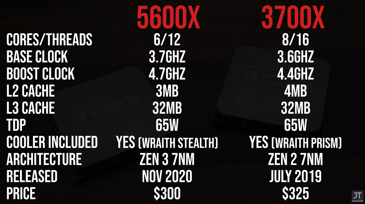그렇다면 다음 세대의 라이젠 5600x와 비교하면 얼마나 성능 차이가 나올까요? 이번 글에서도 Jarrod's Tech 영상을 참고하며 알아보도록 하겠습니다.