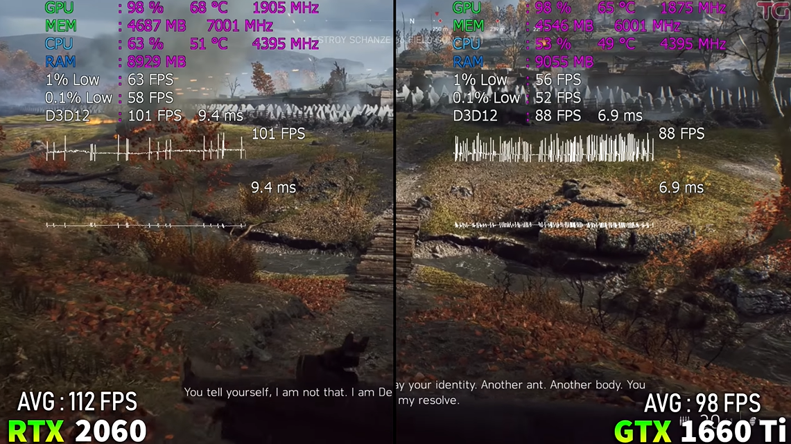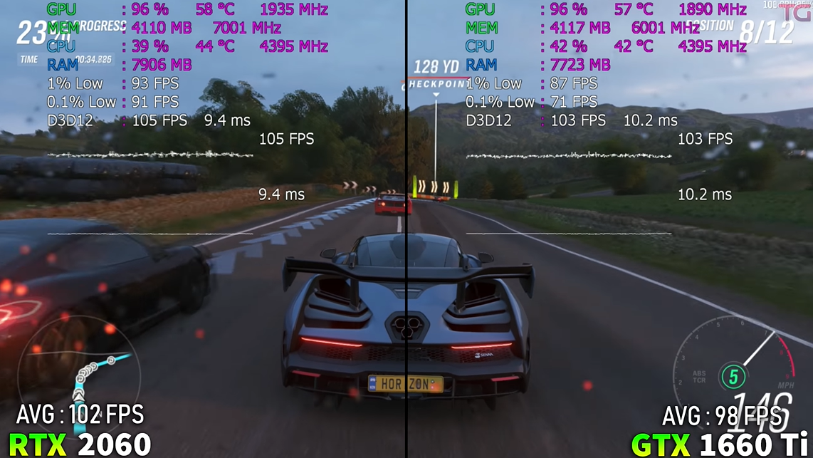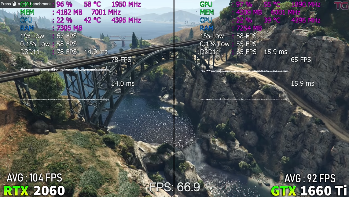 그렇다면 실제로도 그만큼의 성능 차이를 보여줄까요? 아래 영상을 살펴보며 RTX 2060과 GTX 1660 Ti의 성능 격차는 얼마나 나는지 확인해 보겠습니다.
